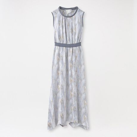 ニュアンス柄とハンカチーフヘムが揺らめく、コンビノースリーブドレス