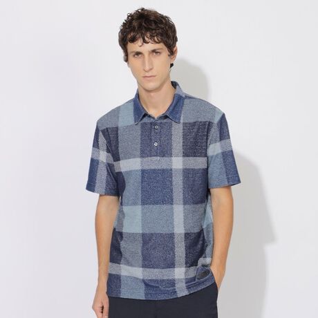 【清涼感溢れるパイル生地のチェック柄ポロシャツ】