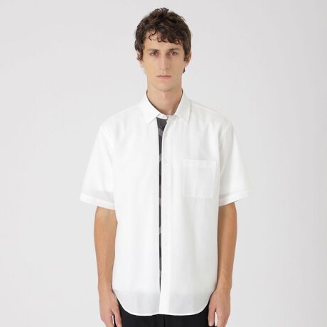 フロントの下前立てと台衿裏にトーナルカラーのクレストブリッジチェック柄をあしらったハーフスリーブシャツです。釦を止めてもフロントにチェックが覗くブラックレーベルならではのデザインです。インナーとしてはもちろん、一枚着でもコーディネートの主役になる一着です。衿型はシンプルなレギュラーカラーで、ややゆったりとしたトレンド感のあるリラックスフィットを採用しています。