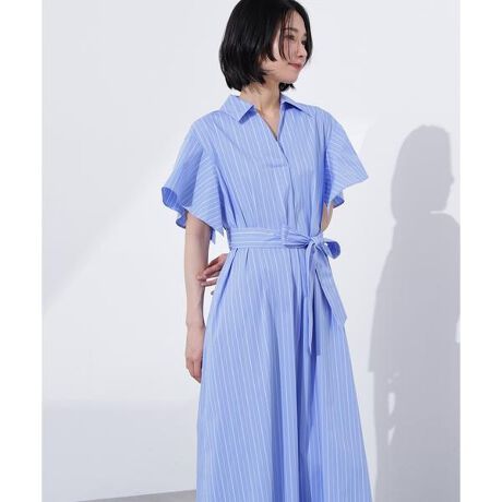 ON/OFFどちらのシーンでも活躍できるシャツワンピース。スキッパーネックできちんと感と抜け感を両立したデザインです。袖はフレアスリーブで二の腕をカバー。脇の下にはマチが付いているので、腕を上げた時に肌が見えにくい仕様に。共地リボンベルトは取り外しができ、ウエストマークをしたり、外して肌離れするAラインシルエットにも着ていただけます。<素材>ハリのあるシャツ生地を使用。無地のマロンブラウン、等間隔ではない洗練されたペンシルストライプ柄のチャコールとブルーの3色展開です。<詳細>仕様・開閉なし裏地・なし透け感・なし / 光沢・なし / 伸縮性・なし 生地の厚さ・普通※モデルの着用画像の場合、光の当たり具合により、実際の色味と異なって見えることがございます。色味は、商品単体の画像をご参照ください。