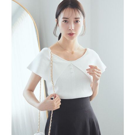 肩を覆うビッグカラーが印象的に着映えを叶えるノースリーブニット。大きく開いたVネックとソフトフィットなコンパクトシルエットが女性らしさを際立ててくれます。フロントの艶めくパールボタンが甘口なアクセントに。ヘルシーな肌見せがスタイリングに新鮮さを加えてくれるおすすめのトップスです。透け感[ややあり]