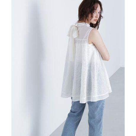 NBBオリジナルの立体感のあるコード刺しゅうが着映えるブラウス。ヨークと裾は無地の切り替えでアクセントをつけ、身頃はふんわりとしたAラインのシルエットで体型カバーが叶います。カジュアルなボトムスにもキレイ目パンツにも着ていただけます。<素材>繊細なローンにオリジナルのコード刺しゅうを施した素材を使用。<詳細>仕様・後ろボタン裏地・なし透け感・ややあり / 光沢・なし / 伸縮性・なし生地の厚さ・薄手※モデルの着用画像の場合、光の当たり具合により、実際の色味と異なって見えることがございます。色味は、商品単体の画像をご参照ください。
