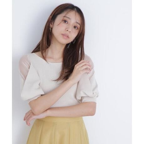 肩の一部が透けるオーガンジー素材を使用したスリーブコンシャスなニット。シアーなスリーブに、身頃と同じニットをレイヤードして、程よい透け感に仕上げいます。襟はすっきりとしたボートネックデザインで、暑い夏にもぴったり。しっかりとした肉のある編地なので、体のラインを拾いすぎずに着ていただけます。<素材>さらりとしたタッチの総針ニットです。<詳細>仕様・開閉なし裏地・なし透け感・ややあり / 光沢・ややあり / 伸縮性・あり生地の厚さ・普通※モデルの着用画像の場合、光の当たり具合により、実際の色味と異なって見えることがございます。色味は、商品単体の画像をご参照ください。