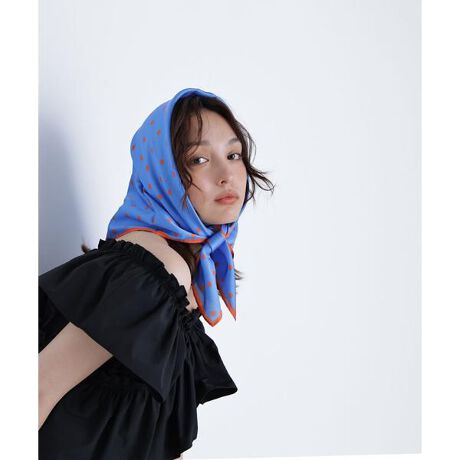 [型番:0175293700]規則的なポルカドット柄の大判スカーフです。ヘッドアクセサリーとしてや、腰に巻くこともできるサイズ感で、アレンジ力が高いアイテムです。※モデルの着用画像の場合、光の当たり具合により、実際の色味と異なって見えることがございます。色味は、商品単体の画像をご参照ください。