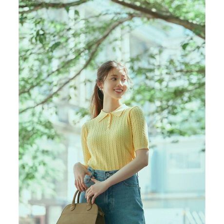 着回し力が高いベーシックなポロ襟ニット。襟付きデザインが、きちんと感とトレンド感を叶えます。ベーシックなケーブル柄なので、スカートにもパンツにも取り入れやすくておすすめです。<素材>キレイな表面感のハイゲージ糸を使用しています。<詳細>仕様・前ボタン裏地・なし透け感・なし / 光沢・なし / 伸縮性・あり生地の厚さ・普通※モデルの着用画像の場合、光の当たり具合により、実際の色味と異なって見えることがございます。色味は、商品単体の画像をご参照ください。