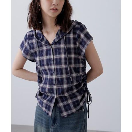 チェック柄フードキャップスリーブシャツ