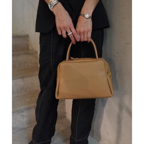 くびれたフォルムとミニマルなデザインが魅力な<PETAL>シリーズのボストンバッグ。やさしい光沢感のあるスムースカウレザーを使用。AW仕様で起毛裏地になっています。着脱可能なショルダー付きでショルダーとしても、ハンドバッグとしても使用できます。財布、スマートフォン、ポーチなど必需品がしっかりと収納できるサイズ感。様々なスタイルやシーンに馴染む、上品なシルエットとひと癖あるデザインがポイント。