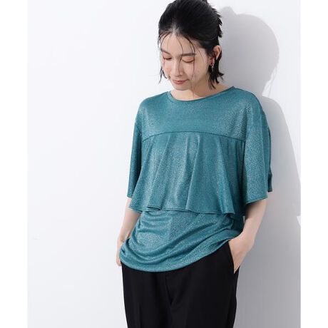 袖と胸元にフレアをあしらったデザイン性の高いカットソー。フレアによって二の腕や胸元をさりげなくカバーします。華やかなラメ糸を使ったカラーが、カジュアルなコーディネートと相性バツグンなアイテムです。<素材>華やかなラメ糸を使ったカットソー素材を使用しています。<詳細>仕様・開閉なし裏地・なし透け感・ややあり / 光沢・あり / 伸縮性・あり 生地の厚さ・薄手※モデルの着用画像の場合、光の当たり具合により、実際の色味と異なって見えることがございます。色味は、商品単体の画像をご参照ください。