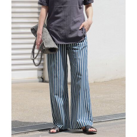 清涼感あふれるストライプ柄が魅力のイージーパンツ。