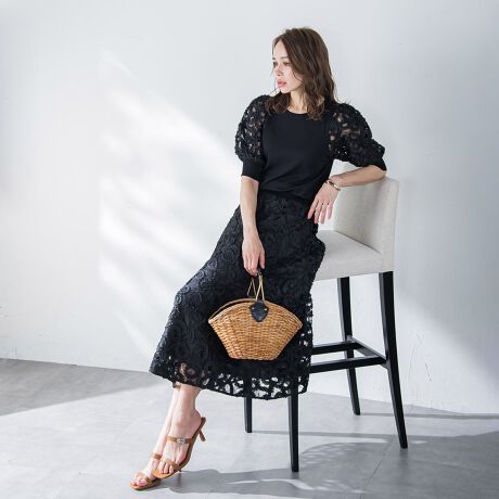 レースにデコラティブな刺繍を施した華やかなスカート。