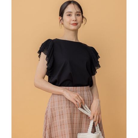 【スタッフコメント】▼身長158cm|着用サイズ2 (通常着用サイズ2)つるっとした身頃の素材感と袖のフリルデザインが大人フェミニンな上品カットソー。着心地も抜群なオンオフ問わず着用いただける万能な1枚です。