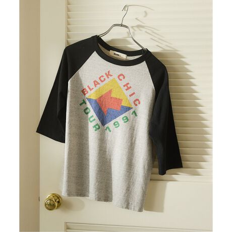 架空のツアーTEEをイメージしたプリントがキャッチーなラグランT。