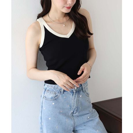バイカラーがおしゃれな2wayサマーニットタンクトップ