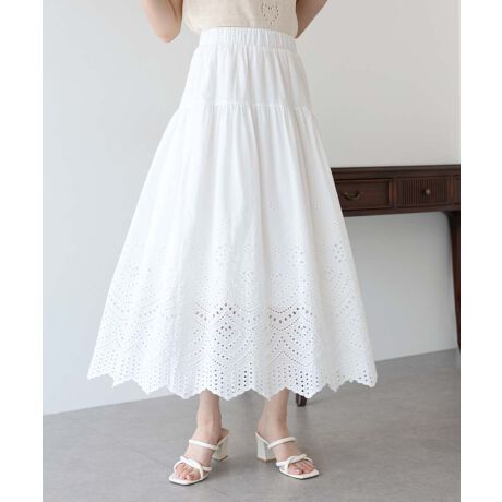 裾の繊細な花刺繍が華やかなコットンレーススカート
