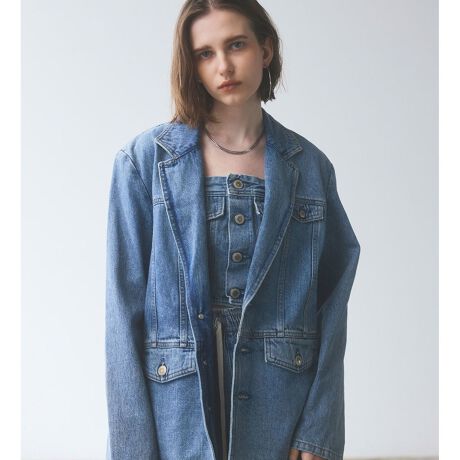 エッジの効いたデニムブレザー。メンズライクなショルダーシルエットが、いつものスタイリングをモードにアップデート。