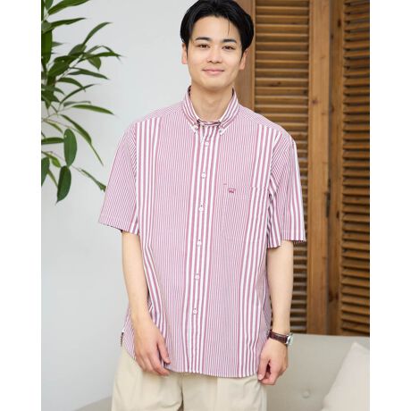 ボタンダウン襟のストライプシャツです。部分的にサッカー組織で織った生地は、肌離れがよくさらっとした着心地が特徴です。単色ストライプはすっきりとした印象を演出します。