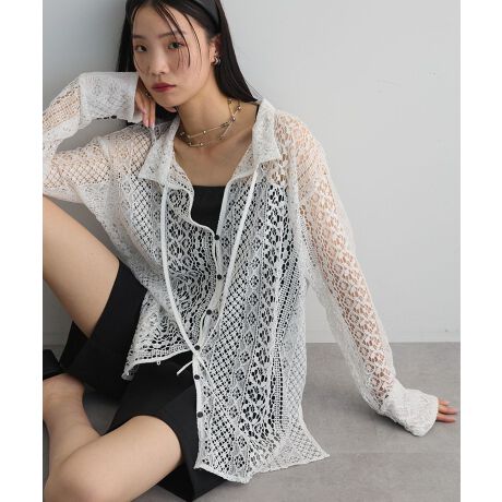 モチーフ柄レースとリボンデザインがキュートなブラウス。程よくゆとりを持たせた縦長シルエットにレースの透け感がヘルシーな肌見せを叶えます。前後どちらでも着用可能な2WAYデザイン。一枚加えるだけで旬なレイヤードのスタイリングがお洒落に決まるおすすめのアイテムです。