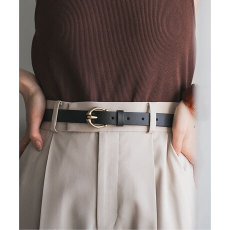 丸みを描くバックルの形と約2cm幅のベルト部分とのバランス感が、主張しすぎず女性らしく巻くことのできる一品。