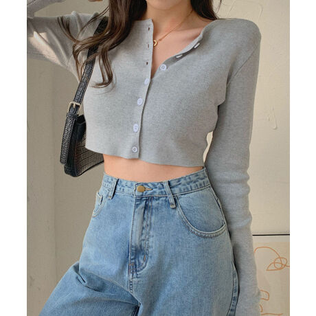 コンパクトなシルエットが女性らしいショート丈ニットカーディガン。