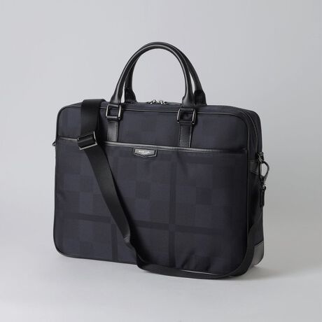 ブランドアイコンのクレストブリッジチェック柄を織りで表現したブリーフバッグ。ビジネスシーンに適応したサイズ感に加えて、内側に小分けが出来るポケットを多数配置しており、機能性・収納力を重視した仕様に仕上げています。