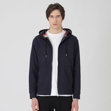 裏面にクレストブリッジチェックをあしらったダブルフェイス素材のパーカー。シンプルなパーカーデザインでありながら、裏毛には無い上品な表面感、シルエットに仕上がっています。裏面にはポリエステルを使用することで袖通しの良さをプラスしています。