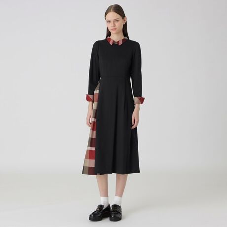 クレストブリッジチェックの小さな衿が顔周りに華やぎをプラスします。
