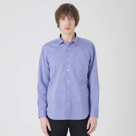 シンプルで着回しやすい麻混の長袖シャツ。袖をまくるとチェックが覗くブラックレーベルならではの隠れたアクセントがポイントです。インナーとしてはもちろん、一枚着でもコーディネートの主役になる一着。衿型はシンプルなレギュラーカラーで、ややゆったりとしたトレンド感のあるリラックスフィットを採用しています。