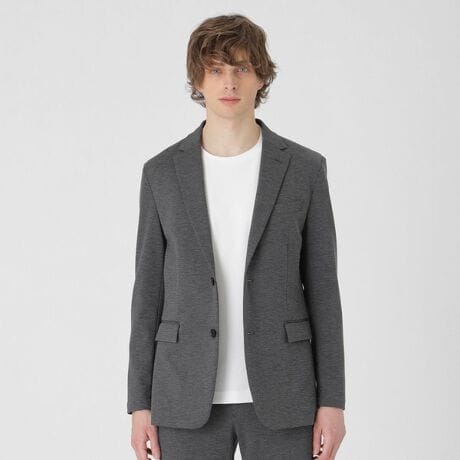 ハイゲージストレッチジャージー素材を使用したアンコンジャケットです。肩パッド等を使用せず、極力裏地も使用しないことで軽さと快適な着心地を追求しました。