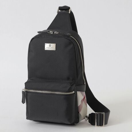 アイコニックなクレストブリッジチェックをサイド部分にさりげなくあしらったボディバッグ。すっきりとした縦長フォルムで都会的な印象に仕上げています。背面がメッシュ素材のため、クッション性・フィット性の高い仕様です。