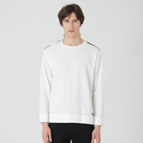 ヨーク部分にクレストブリッジチェックをあしらった定番のニットソー。程良い厚みに編み上げたニットライクな生地を使用することで、一枚での着用はもちろん、インナーにも合わせやすいアイテムです。