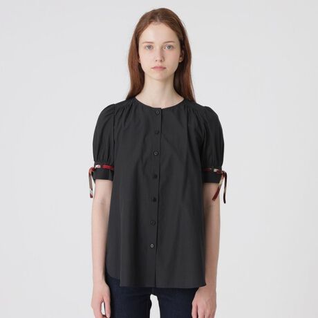 パフスリーブのカフスに付いたチェックリボンがブルーレーベルらしいアクセントになります。