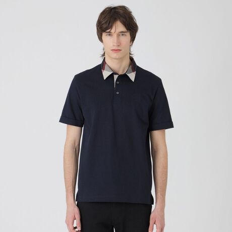 衿部分にクレストブリッジチェックをあしらったブラックレーベルならではの存在感あるデザインのポロシャツ。胸のエンブレム刺繍がさりげなく高級感を演出。