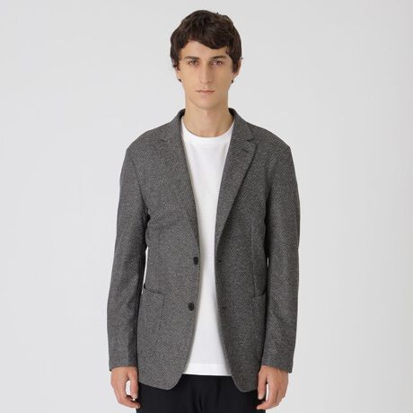 メランジカラーのダブルフェイスジャージーを使用したアンコンジャケットです。表地も必要最小限、かつ裏地を使用しない軽さに拘った仕様を採用しています。マシンウォッシャブル対応のイージーケアジャケットです。