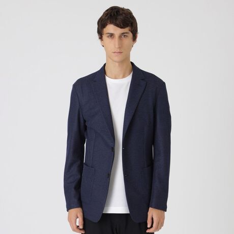 メランジカラーのダブルフェイスジャージーを使用したアンコンジャケットです。表地も必要最小限、かつ裏地を使用しない軽さに拘った仕様を採用しています。マシンウォッシャブル対応のイージーケアジャケットです。