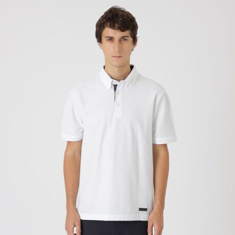 生地の凹凸感により肌離れが良く、さらっとした着心地のポロシャツ。内台衿、袖口裏にクレストブリッジチェックをあしらう事でデザインアクセントに。衿はボタンダウン仕様でジャケットのインナーとしても収まりの良いデザインにしています。