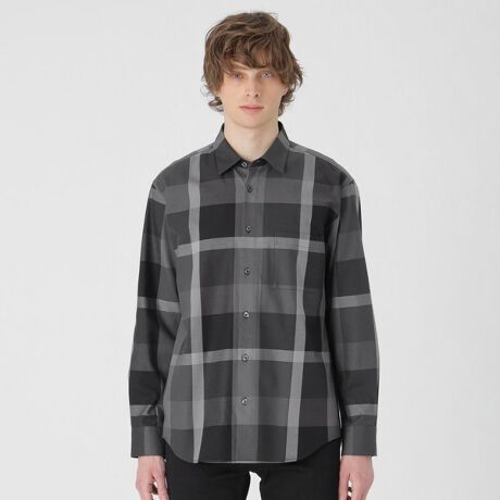 アイコニックなクレストブリッジチェックを全面にあしらったレギュラーカラーシャツ。コーディネートの主役としてだけではなく、インナーとしても映えるブラックレーベルらしい一着です。