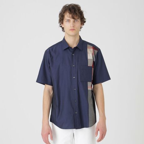 [型番:51M65575__]【フロントをチェック柄で切り替えたパッチワークデザインシャツ】フロントをパッチワーク調に切り替えたデザインシャツ。一部にクレストブリッジチェック柄を使用する事で、ブラックレーベルならではの一着に。トレンド感のあるリラックスシルエットを採用しています。素材には美しい光沢の出るツイル生地を使用。シンプルでありながら、上品な印象に仕上げています。※展開店舗については、予告なく変更になる場合がございます。