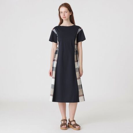 チェック素材を贅沢に使用したカットソーコンビドレスです。