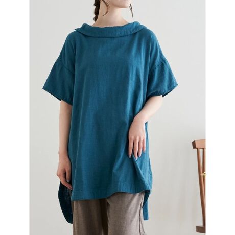 すっきりとしたロールカラーが上品な印象のチュニック。