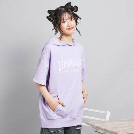 チュニック丈なのでショートパンツと合わせるのがおすすめ。