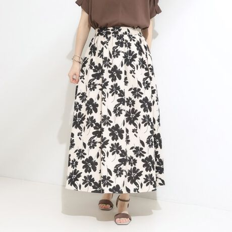スカートのカラーや柄がアクセントになるので、トップスはシンプルでもサマになります。