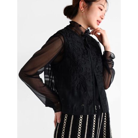 コード刺繍×チェック柄が目を惹くデザインジレ。