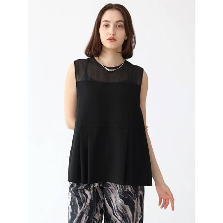 肩回りの大人な肌見せと裾のタックプリーツが女性らしくもモードな雰囲気のブラウス。前後両身頃にタックを施し、全体に立体感を加えるだけでなくどこから見てもサマになるアイテム。ハイウエストの位置に切り替えデザインが自然なスタイルアップも叶えます。ボトムによってデイリーからオフィス、セレモニーまで幅広くお使いいただけます。