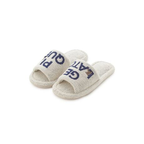 ネイビーのブランドロゴに、お座りポーズのベアを刺繍した爽やかなカラーリングのルームシューズです。キュートになりすぎないスタイリッシュな配色で、インテリアになじみやすく仕上げました。ふっくらと柔らかなはき心地でロングシーズンお楽しみいただけます。同シリーズのバスマットやタオル等と組み合わせたり、ギフトにもおすすめのアイテムです。