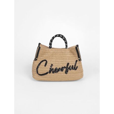 シーズンムード高まる雑材素材と、スパンコールロゴの掛け合わせが気分高まるバッグ。