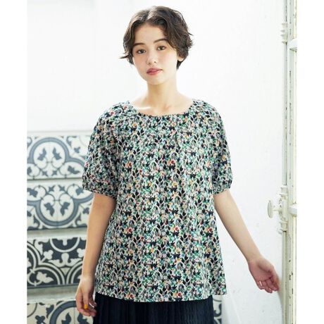 夏にピッタリの一枚着カットソー。リラックス感のある夏場も着やすいブラウスライクなシルエットです。ほどよい袖丈で二の腕カバーを実現。ふんわりとしたラグランスリーブは大人かわいくラフな雰囲気を叶えます。着脱しやすいプルオーバータイプ。胸元のタックや肩から背中にかけて施したヨーク切り替えもデザインのポイントに。カラフルな蕾と葉っぱ柄のホコモモラらしい総柄カットソーは夏にぴったりのひと品です。