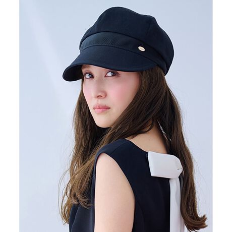 幅が広く長めのつばがお顔周りを覆い遮光効果が高いシンプルなキャスケットは、キャップのような機能性を装備しながら、綺麗見えが叶うデザイン。グログランテープのディテールをアクセントとしてあしらい、カジュアル感が抑えめのレディーな雰囲気に仕上げています。