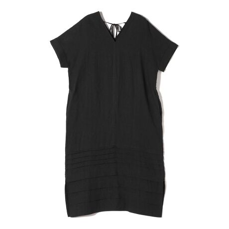 身体のラインを拾わない縦長シルエットで、裾に施した太めのタックがデザインポイント。