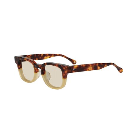 王道なウェリントン型、特徴的な太めのセルフレームを採用。上部がフラットなアメリカンな印象を与えるデザインが特徴。