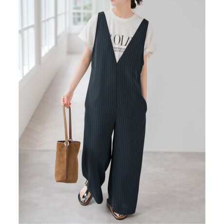 さらりとした肌離れの良さと、美しいドレープ感が魅力のピンストライプVサロペット。